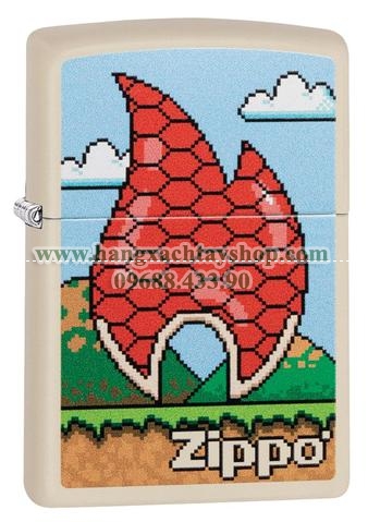 Chiếc bật lửa này xuất hiện như là chiếc đầu tiên thuộc loại này trên zippo.com! Thiết kế này là một sự bùng nổ từ quá khứ, ngọn lửa lấy cảm hứng từ trò chơi xuất hiện trên chiếc bật lửa màu kem mờ, và sẽ gợi cho bạn nhớ về thời kỳ đơn giản hơn. Thiết kế hình ảnh màu này được đóng gói trong hộp quà tặng. Để có hiệu suất tối ưu, hãy đổ nhiên liệu bật lửa Zippo
